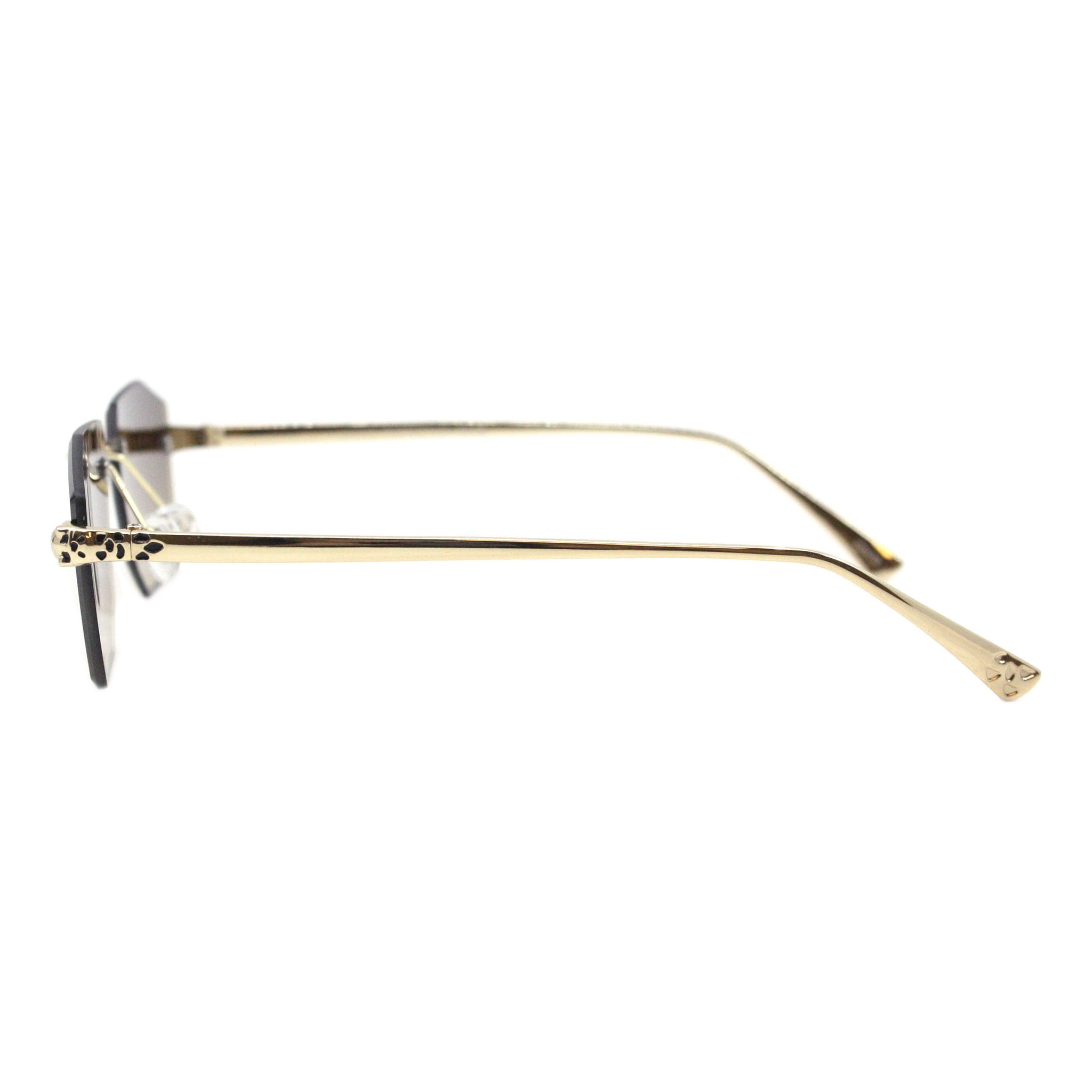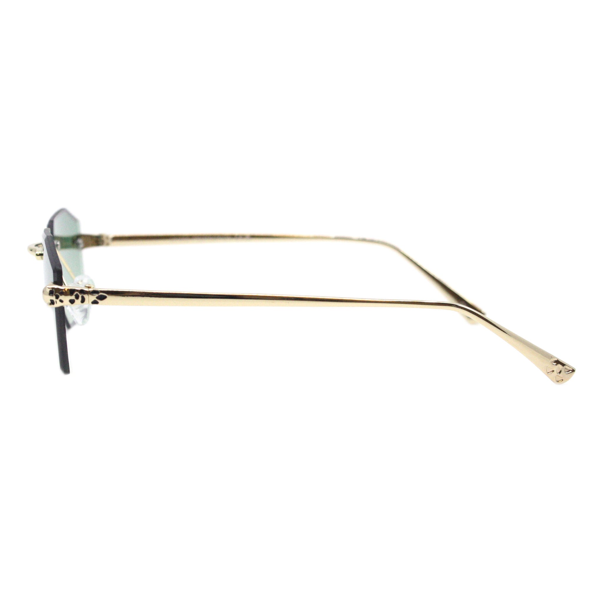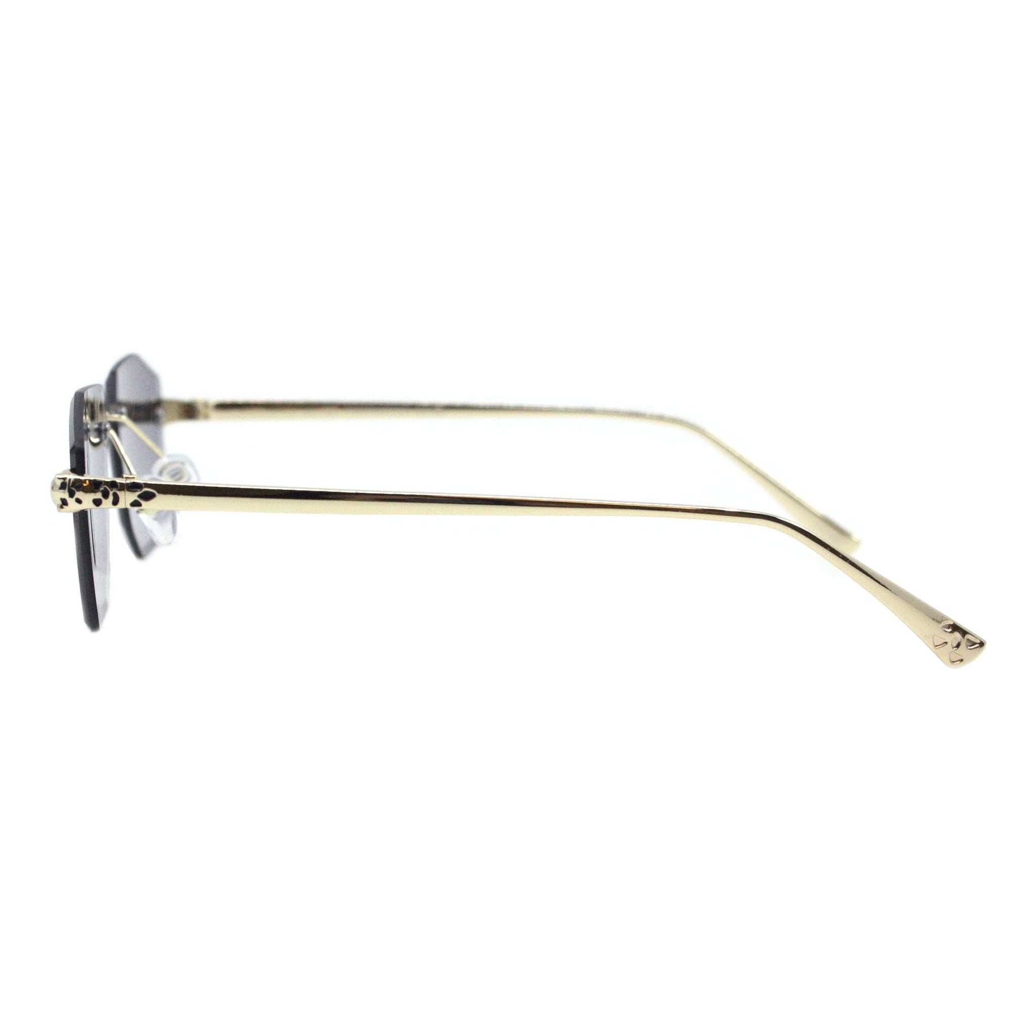 Geometric Rectangular Rimless Sunglasses Metal Leopard Design UV400