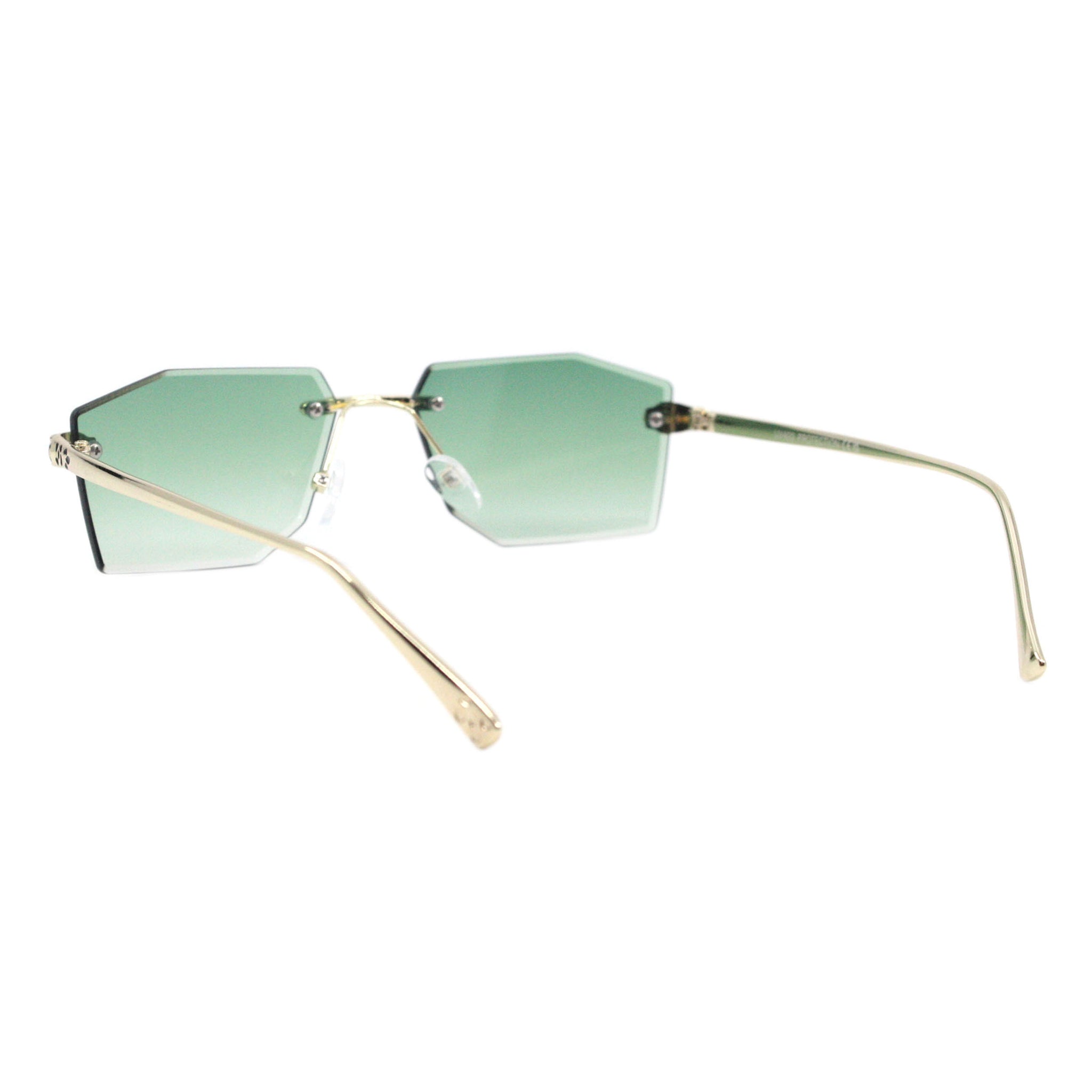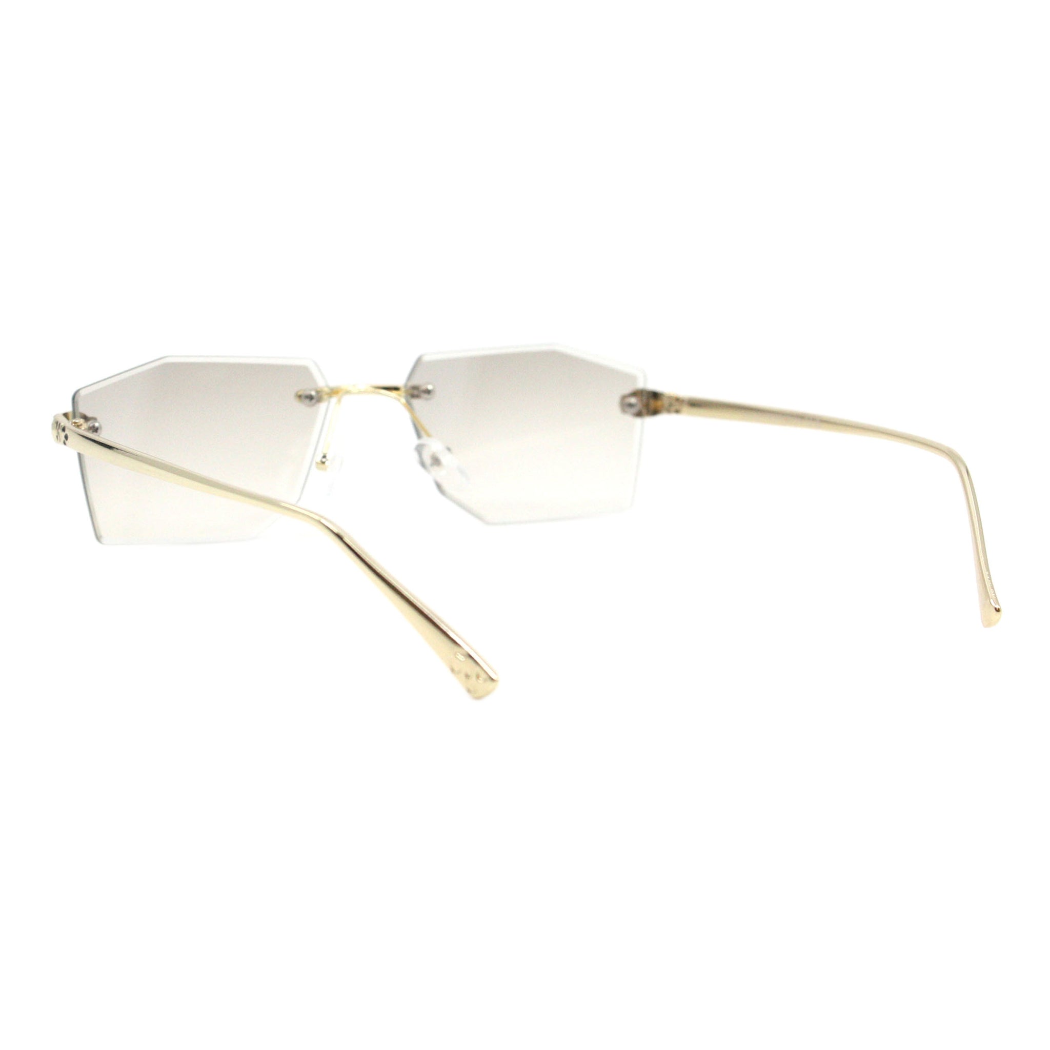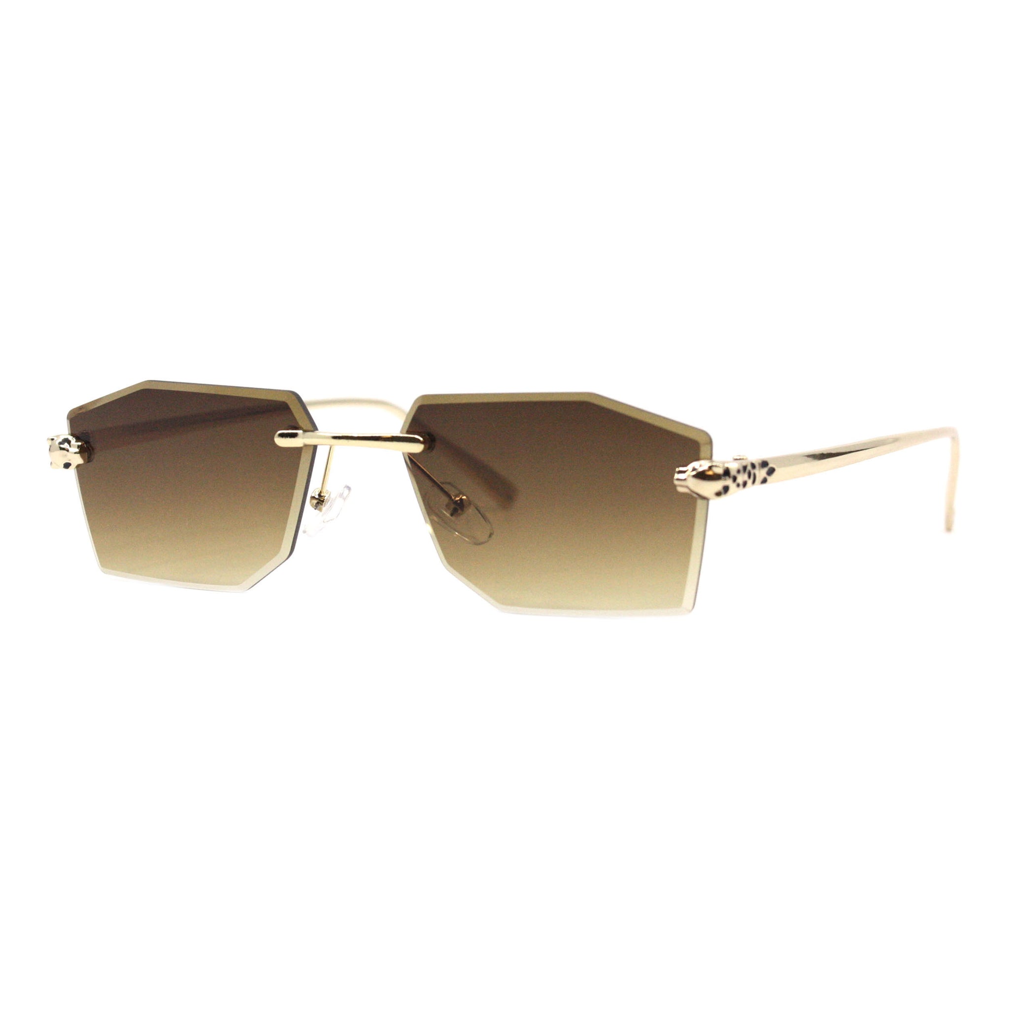 Geometric Rectangular Rimless Sunglasses Metal Leopard Design UV400